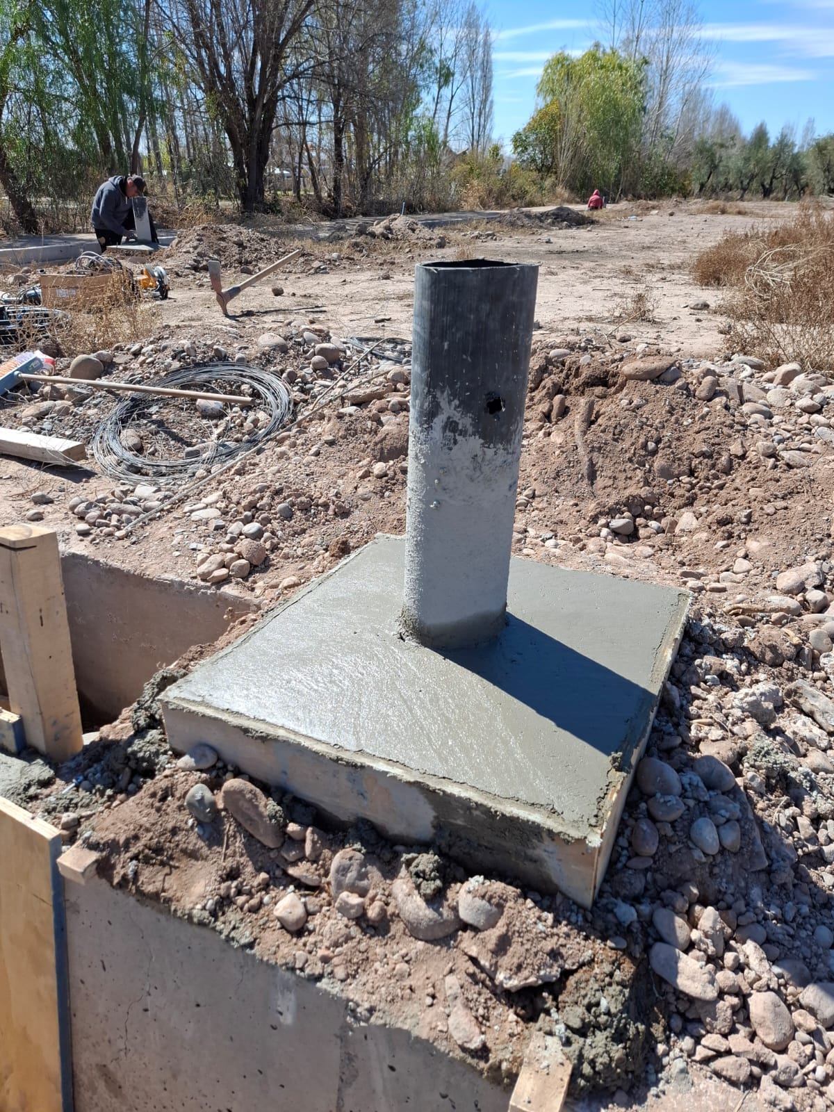 En esta oportunidad se está trabajando en el llenado de bases de hormigón para luego continuar con la colocación de columnas de iluminación y posteriormente el armado de la sub estación, y la instalación de columnas de media tensión, y por último el montaje de cables pre ensamblado al igual que la colocación del transformador.
